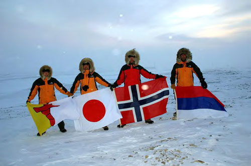 午後から、みんなで写真を撮った。全隊員(ノルウェー・ロシア・日本)の国旗と、