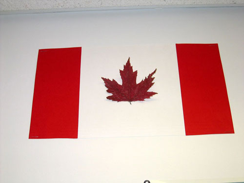 本物のメイプル・リーフ(かえでの葉)を使って作られたカナダ国旗