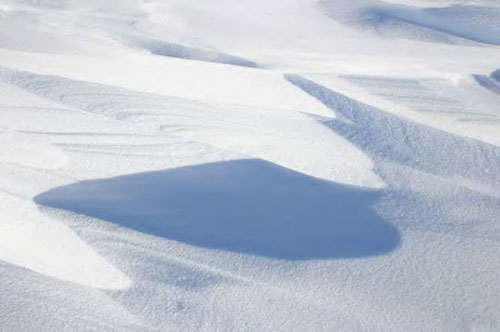 サスツルギとは、風が雪を波のように形作ってしまうものだ。しかも、強風で雪が硬くしまり、スキー・セーリングをやったら飛ぶように滑り、危険なほどだった。