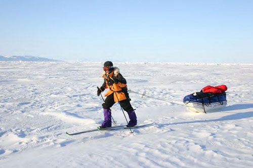 今は、−28℃から−35℃程と一定している。−48℃になると、テント内に入り、寝袋に包まっていても針糸の隙間から寒さが進入してくるような感じで、素手でいるのは難しい。