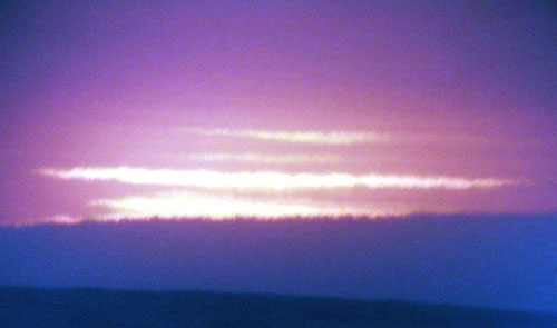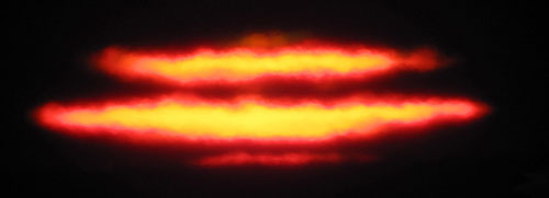 冷たい空気と暖かな空気がぶつかり、太陽の形状は様々な棒のような形になり、しかも二重、三重、四重と幾十にも重なり、どう見ても、太陽の形には見えなくなってしまう。